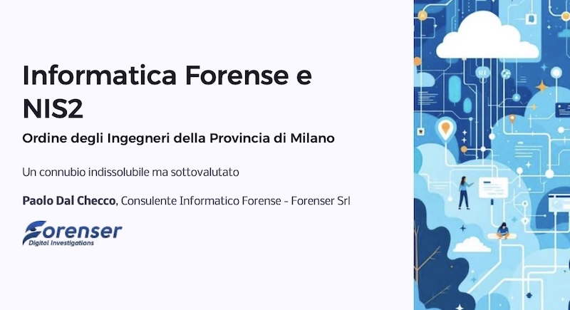 L’intervento del CEO Forenser Paolo Dal Checco, nel corso sulla NIS2, è stato intitolato “Informatica Forense e NIS2: Un Connubio Indispensabile per la Sicurezza Sistemica” ed è stato dedicato all’importanza critica del legame tra Informatica Forense e la Direttiva NIS2, un binomio che, sebbene indissolubile, è ancora troppo sottovalutato.